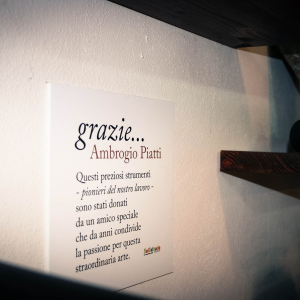La passione per l’arte tipografica ha dato vita, negli anni, ad un piccolo spazio dove raccontare l'evoluzione della stampa. La continua ricerca e un’incontenibile voglia di ricordare la tradizione rivelano la complessa tecnica tipografica e la sua evoluzione nel tempo. Questo "tesoro" è custodito con scrupolosa cura da Vittorio Mazzucchi (una delle "anime" della Sollicitudo) con la complicità di un noto amico della cooperativa, Ambrogio Piatti (fornitore macchine da stampa - Piattigraf).